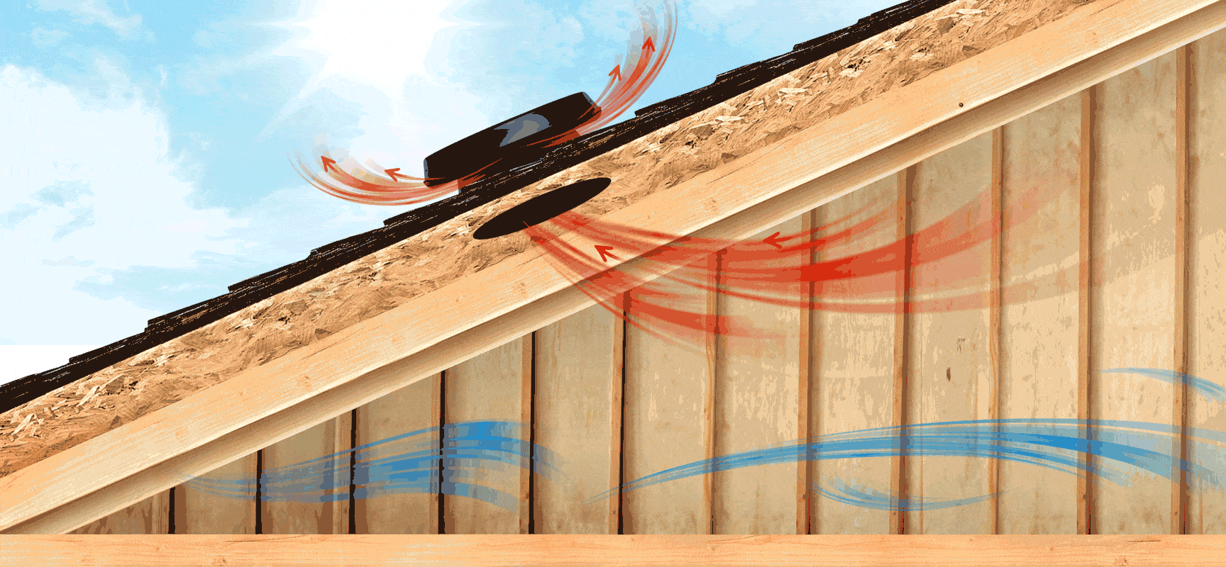 Fresh air in (soffits) hot air out (roof exhaust)